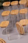 bambu kapaklı cam saklama kabı seti, 9’lu cam kavanoz seti, hava geçirmez cam saklama kabı, mutfak düzenleyici kavanoz seti, sağlıklı gıda saklama kabı, şeffaf cam kavanoz, bambu kapaklı kavanoz seti