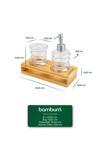 Tasarım: Zarif ve modern hatlara sahip sabunluklar, kendileri için özel olarak tasarlanmış bambu stand üzerine tam oturarak estetik bir bütünlük oluşturur. Stand, hem kaymayı önler hem de tezgahınızı düzenli tutar.