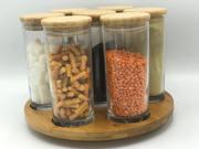 7 ADET VAKUMLU 250 ML BAMBU KAPAKLI CAM BAHARATLIK