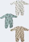 %100 Pamuk Kanguru Desenli 3'Lü Patikli Tulum (Kız - Erkek - Yenidoğan)