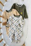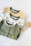 Bamoola %100 Pamuklu Hayvan - Meyve - Deniz Desenli 3'Lü Patikli Tulum (Kız - Erkek - Yenidoğan)