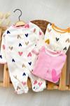 %100 Pamuklu Renkli Kalp Desenli 3'Lü Patikli Tulum (Kız - Erkek - Yenidoğan)