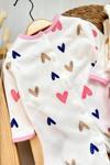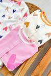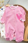 Bamoola %100 Pamuklu Renkli Kalp Desenli 3'Lü Patikli Tulum (Kız - Erkek - Yenidoğan)