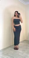 Bandeau Bustier & Maxi Etek Takım Kahverengi