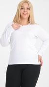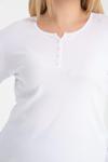 Curve Büyük Beden Pamuklu Likralı Bisiklet Yaka Düğme Detaylı Basic Düz Beyaz Bluz