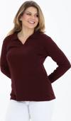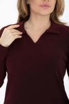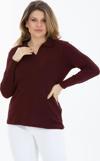 Curve Büyük Beden Pamuklu Likralı V Yaka Basic Düz Uzun Kol Bordo Bluz