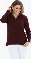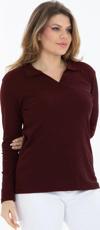 Banega Curve Büyük Beden Pamuklu Likralı V Yaka Basic Düz Uzun Kol Bordo Bluz