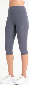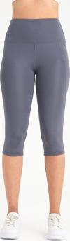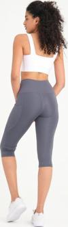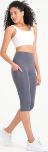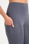 Kadın Antrasit Yüksek Bel Toparlayıcı Çift Cepli Diz Altı Kapri Tayt Capri