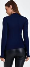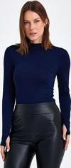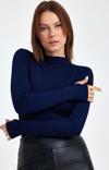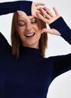Banega Kadın Lacivert Parmak Detaylı Yarım Balıkçı Yaka Pamuk Viskon Body