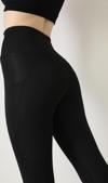 Kadın Siyah Yüksek Bel Çift Cepli Push Up Toparlayıcı Sıkılaştırıcı Spor Tayt