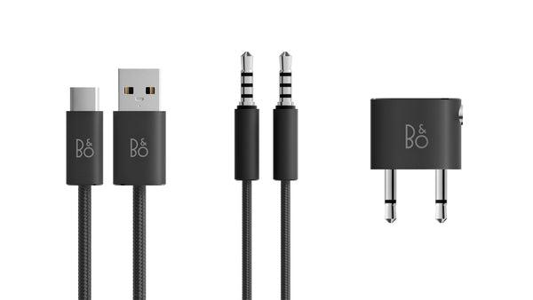 Uçuş adaptörü, şarj kablosu ve ses kablosuna, alüminyum detaylar ve dokuma kumaş kordonlarla benzersiz bir dokunuş verilmiştir.