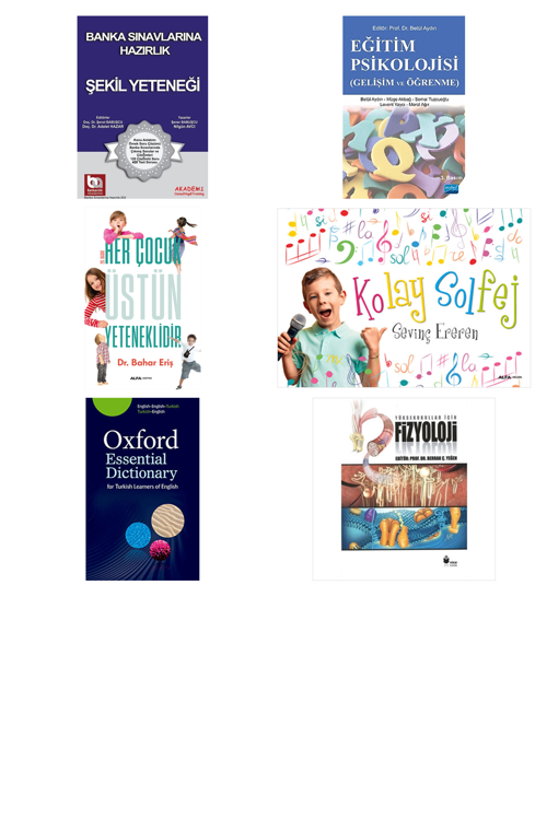 Banka Sınavlarına Hazırlık - Şekil Yeteneği - Eğitim Psikolojisi - Her Çocuk Üstün Yeteneklidir - Kolay Solfej - Oxford Essential Dictionary - Yüksekokullar İçin Fizyoloji