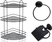 Sas Haus Banyo Aksesuar Seti 3 Lü SİYAH , Ömür Boyu Paslanmaz Köşelik Duş Rafı Şampuanlık SİYAH EK-03