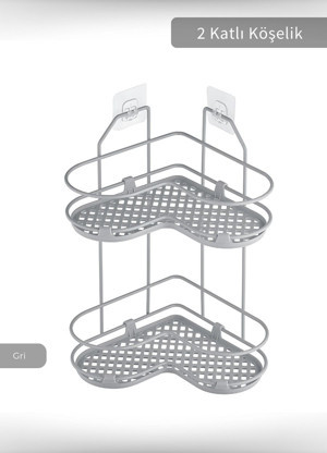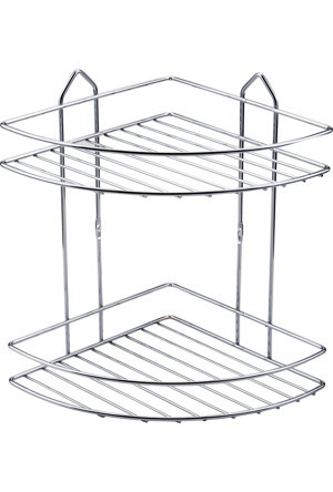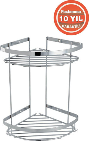 Geseus Paslanmaz İki Gözlü Banyo Köşe Rafı Şampuanlık 304 Kalite Paslanmaz Çelik-GNRL2014
