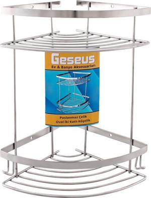 Geseus Paslanmaz Çelik İki Katlı Kancalı Banyo Köşe Rafı İnox BK082H