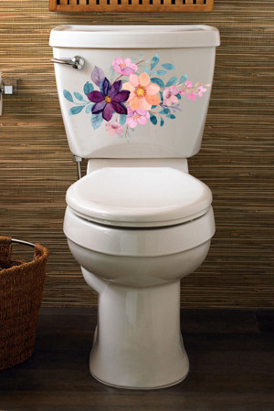 Sulu Boya Çiçekler Klozet Dolap Ve Banyo Sticker