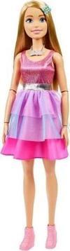 71 cm. boyundaki Barbie düz sarı saçlı ve katmanlı pembe bir elbise giyiyor. Işıltılı korse gümüş bir kemerle süslenmiştir ve pembe botlar görünümü tamamlar!