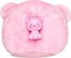 İlham verici bir 'Aşk' mesajı olan ve içinde bir Barbie® bebek saklayan renkli bir tişört giyen sevimli, pelüş pembe bir oyuncak ayı bulmak için kutuyu açın.