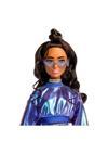 Barbie Deluxe tarzı Parlayan Çivit mavisi bebek, moda semtlerinin atmosferinden ilham alınarak tasarlanmış olup, gereksiz sözlere başvurmadan etkilemeyi bilen modern bir hanımefendinin imajını yansıtıyor.