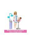 Bu oyun setinde 2 bebek, bir diş bakımı istasyonu ve hasta sandalyesi ile diş aletleri, diş fırçası ve diş macunu gibi daha küçük aksesuarlar bulunur