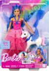 Barbie'nin 65. yıl dönümünü bu göz alıcı bebekle kutlayın! 'Barbie A Touch of Magic' dizisindeki karakterinden ilham alınarak tasarlanan bebek, renk geçişli pembe elbisesiyle göz kamaştırıyor. Masmavi saçları, tacı, kollarındaki kanatları ve çıkarılabilir kuyruğu, zarif görünümüne muhteşem bir hava katıyor. Aksesuarlar arasında gümüş küpeler, bant detaylı topuklu ayakkabılar, saç fırçası ve efsanevi kanatlı unicorn figürü yer alıyor. Bebek tek başına ayakta duramaz. Renkler ve süslemeler çeşitlilik gösterebilir.