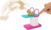 Döndürmesini görmek veya su ile doldurmak ve sıkmak için Barbie® bebeğin köpek yavrusu arkadaşını dalış tahtasına yerleştirin.
