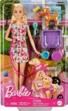 Sette bir yavru köpek ve tekerlekleri dönen, yürüteç kullanan bir büyük köpek bulunur. Bu minik dostlar Barbie ile yürüyüşe çıkmaya bayılıyor. Çocuklar, bol sevgiye ve ekstra ilgiye ihtiyacı olan köpekçiğin yürütecini çıkarıp takabilir. Mama kabı, tasmalar, evcil hayvan yatağı ve ellerine tam oturan tasma kayışı ile Barbie, sevimli dostlarına bakmak için ihtiyacı olan her şeye sahiptir.