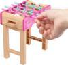 Kızlar şut çekip gol atmak için kolları çevirebilir! Hikaye anlatımı parçaları arasında 3 langırt topu, 2 atıştırmalık ve 2 içecek aksesuarı yer alır.