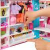 İstediğiniz zaman dolabı toplamak ve kapısını kapatarak bir yere taşımak çok kolay! Tutma kolu taşımayı kolay hale getiriyor! Oyun setine Rüya Gardırobu, Barbie® bebek, üç ek kombin ve aksesuarlar dahildir.