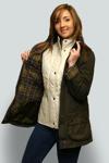 Barbour markasının şıklığı ve kalitesiyle tasarlanan bu kadın ceketi, zarif bir yeşil renge sahiptir.