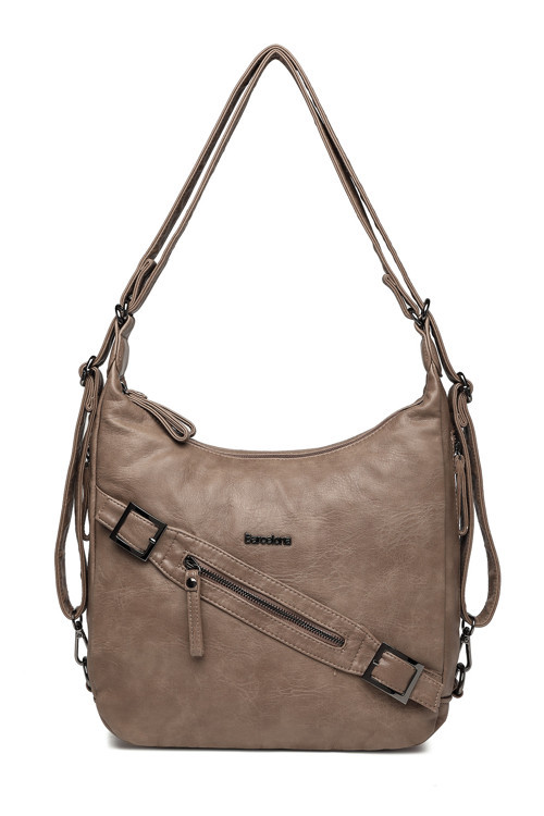 Hüvendo Barcelona Günlük Orta Boy Kemer Detaylı Kadın Omuz ve Sırt Çantası Ayarlanabilir Askılı Çok Yönlü Tasarım Vizon
