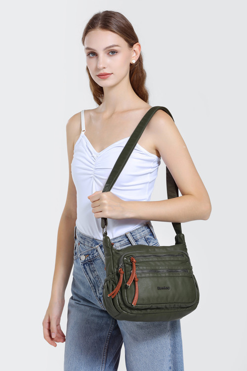 Çok Cepli Ayarlanabilir Uzun Askılı Spor Tasarım Günlük Kadın Omuz Çantası – Salaş Yıkamalı Deri