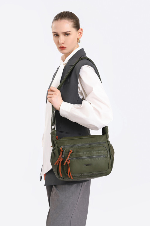 Hüvendo Barcelona Orta Boy Çok Cepli Uzun Çapraz Askılı Spor ve Günlük Kadın Omuz Çantası Koyu Yeşil
