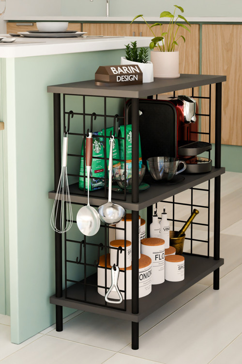 Barın Desıgn 3 Raflı Telli Çevir-Kur Çok Amaçlı Raf Ünitesi | Metal Gövde Mutfak Düzenleyici | Pratik Organizer