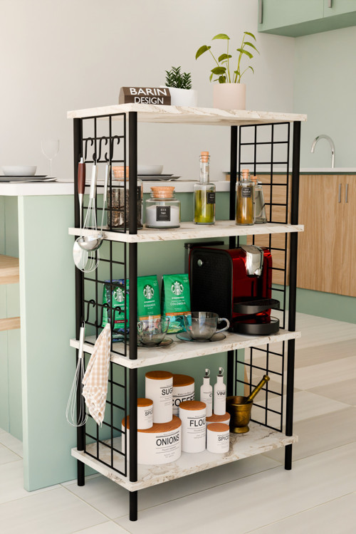 Barın Desıgn 4 Katlı Metal Telli Raf Ünitesi Çevir Kur Sistemli Kahve Köşesi ve Mutfak Düzenleyici Raf Açık Dolap