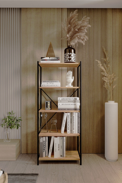 Barın Desıgn 5 Raflı Kitaplık Demir Profil Modern İskandinav Çalışma Odası Ofis Salon Kitaplığı Evrak Rafı Metal