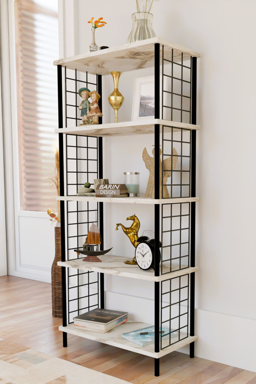 Barın Desıgn 5 Raflı Telli Metal Kitaplık Salon,Ofis,Çalışma Odası Modern Düzenleyici Çevir Tak Kolay Kurulum Raf