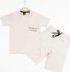 %100 Pamuk İkili Takım T-shirt ve şort Erkek Çocuk HLK506070183 Bej
