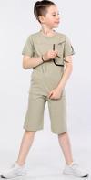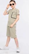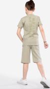 Bu kısa kollu T-shirt ve şort ikili takım, çocuğunuzun hem şık hem de rahat görünmesini sağlar. Her detayı özenle düşünülmüş olan bu takım, çocuğunuzun gün boyu rahat ve özgürce hareket etmesine olanak tanır. Hem günlük kullanımda hem de özel etkinliklerde çocuğunuzun enerjisini ve tarzını yansıtan bu takım, gardırobunun vazgeçilmez bir parçası olacaktır.