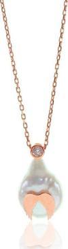 925 ayar gümüş rose barok inci üstü kanat deseni kolye. İnci doğal olduğu için boyutu değişiklik gösterebilir. Boyut:18x12 mm zincir uzunluğu 45 cm