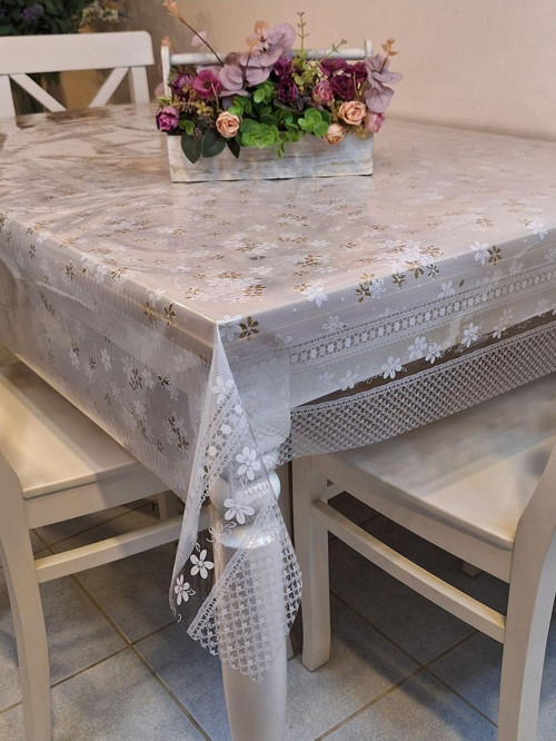 Başak Ev Tekstili Şeffaf 0.018 Mm Pvc Muşamba - Desenli Silinebilir Şeffaf Masa Örtüsü