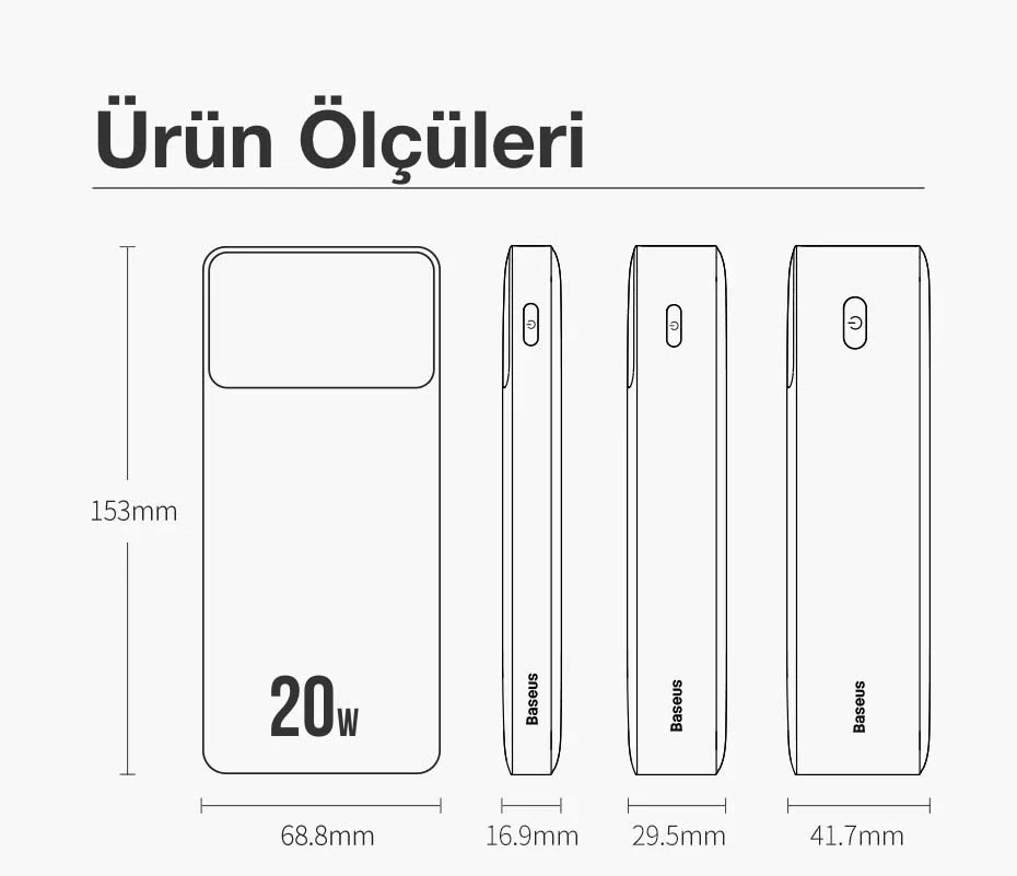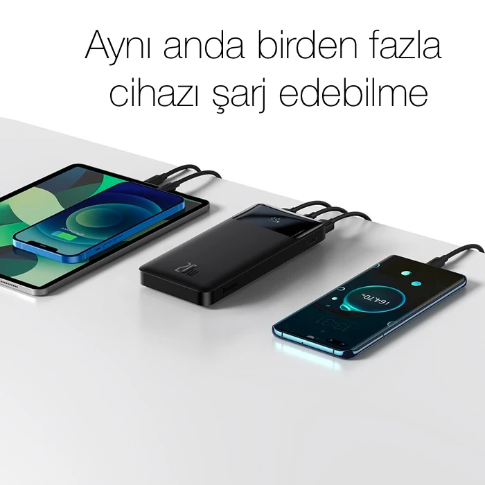 Şık ve modern tasarımı ile Baseus Bipow 20W LED Göstergeli Powerbank ile aynı anda 3 cihazı şarj edebilirsiniz.