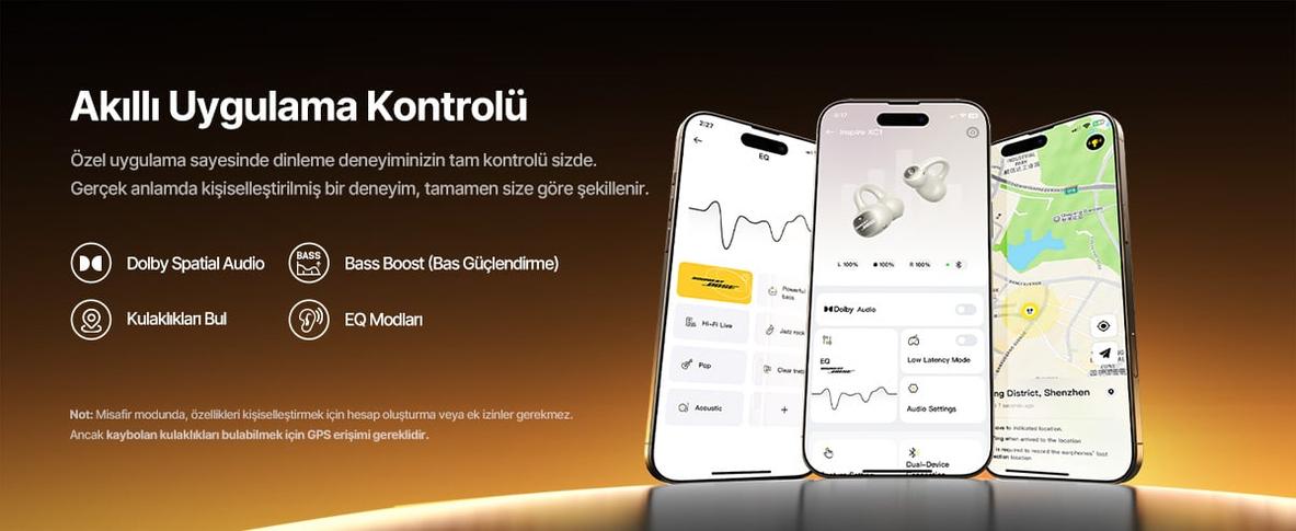 Baseus Inspire XC1 Açık Kulak İçi Klipsli Bluetooth Kulaklık, Bose Ses Teknolojisi, Dolby Audio, IP66 Su Geçirmez, 40 Saat Çalma Süresi - Siyah