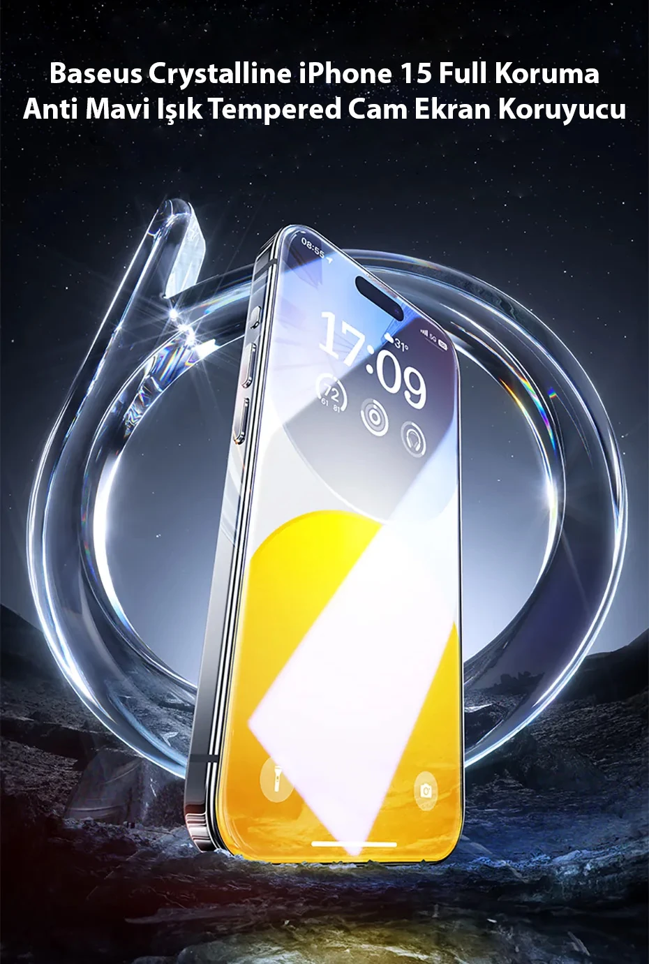 Baseus Crystalline iPhone 15 Full Koruma Anti Mavi Işık Tempered Cam Ekran Koruyucu