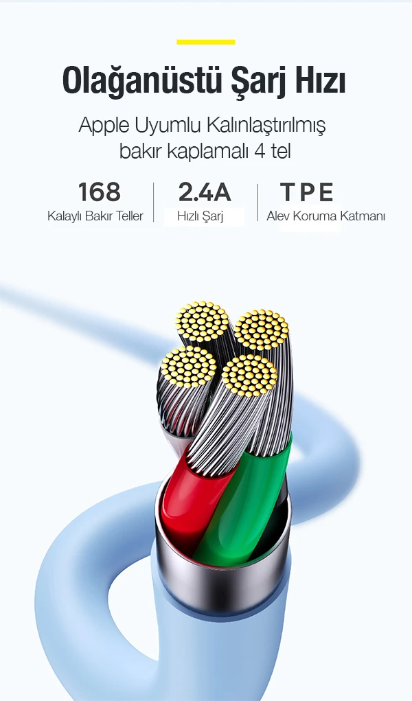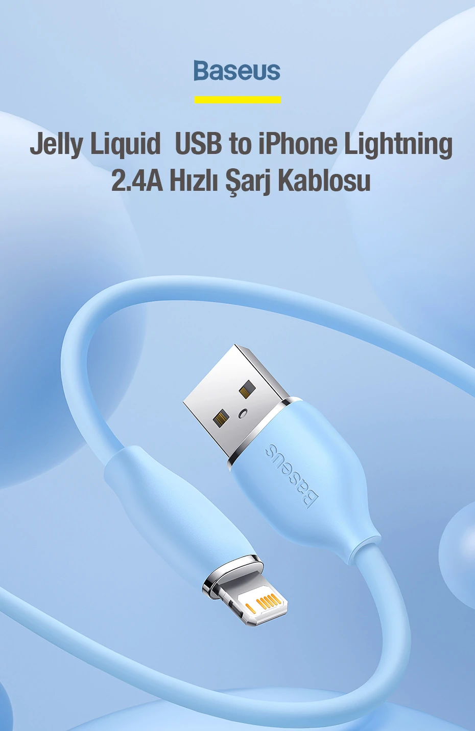 Baseus Jelly Liquid USB to iPhone Lightning 2.4A Hızlı Şarj Kablosu 1.2m