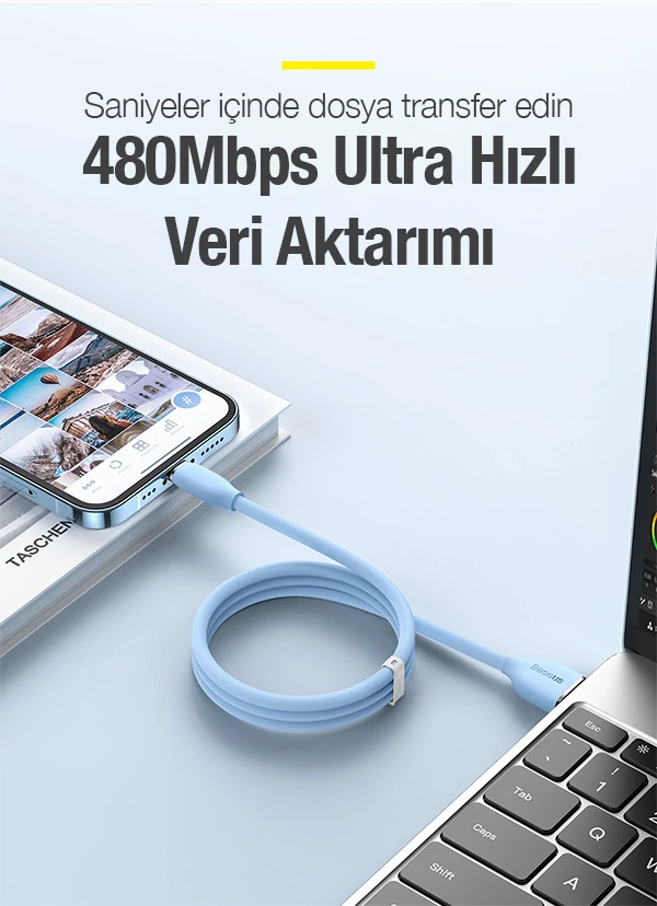 Kablo yalnızca şarj değil 480 Mbps hızında veri iletimi sağlar.