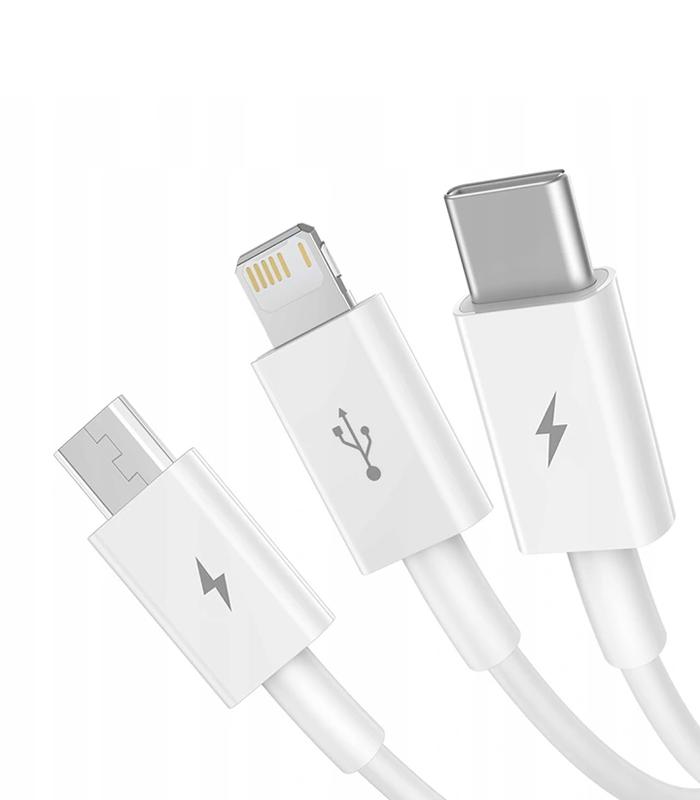 Baseus 1.5 Metre 3.5Amper Yüksek Hızlı 3in1 Type-C, İphone Lightning ve Micro Şarj ve Data Kablosu