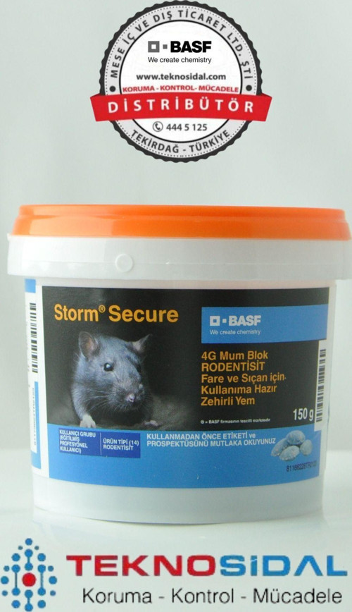 Fare zehiri storm secure 4g mum blok 150 gr Storm secure kullanıma hazır bir preparattır. Tüm istila merkezleri, kaçma yolları, girişleri, yuvalanma ve beslenme merkezleri dikkatlice tespit edilmeli ve hazır yemler bundan sonra kullanılmalıdır. Çocukların ve hedef olmayan canlıların korunması için yemler kiremit, boru gibi malzemelerle örtülmeli yada değişik kap ve kutulara veya fare istasyonlarına koyularak üzerlerine 'dikkat fare zehiri' şeklinde uyarı yazısı yazılmalıdır. Zararlı türü yaşam evresi Uygulama alanı ve şekil Uygulama dozu Uygulama aralığı Fare Kapalı alan ve mesken çevresi- Birçok yemleme noktası kullanın, pislik- Lerinin görüldüğü, zarar verdikleri tespit edilen yerler ve diğer aktivite görülen bölgelere istasyon içerisine yem yerleştirin Her 3-5 metrede bir yemleme noktasına
