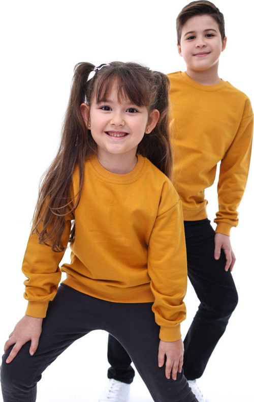 Zuzunga Basic Bisiklet Yaka Şardonlu Çocuk Sweatshirt 3-10 Yaş Hardal