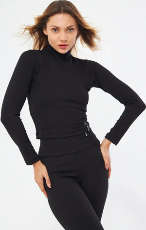 Fitilli Soft Touch Balıkçı Yaka Bluz Siyah